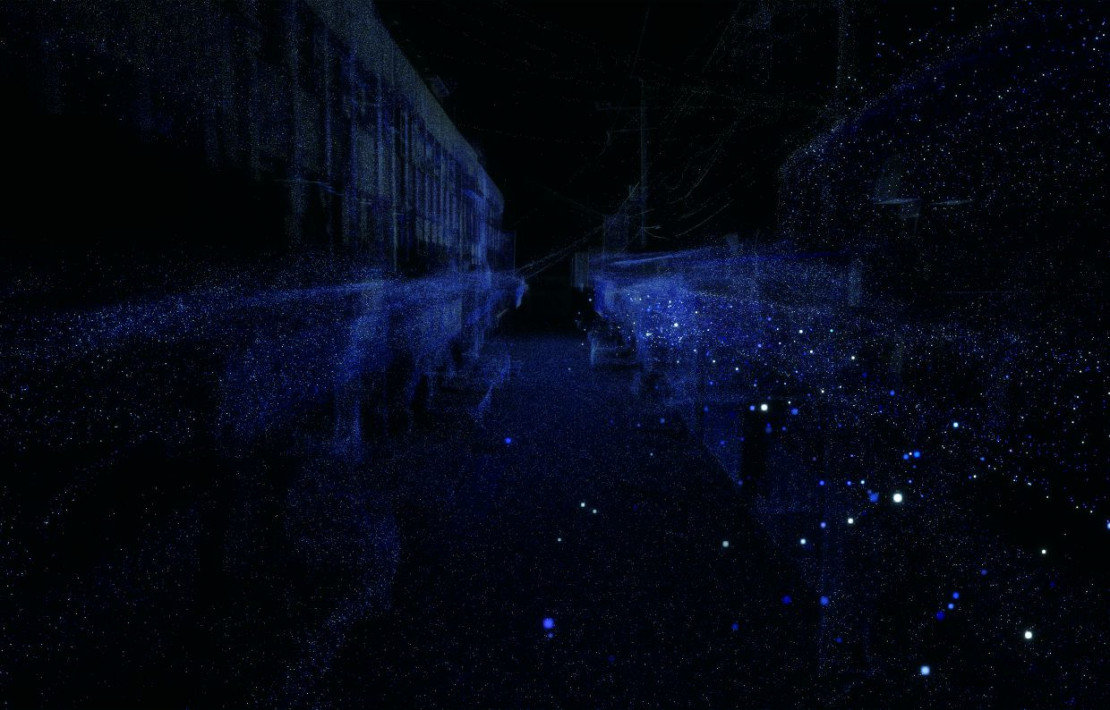 During the test shooting, I decided to change the background also to the Lidar scanned point cloud imagery. It fitted better not only aesthetically but also thematically.